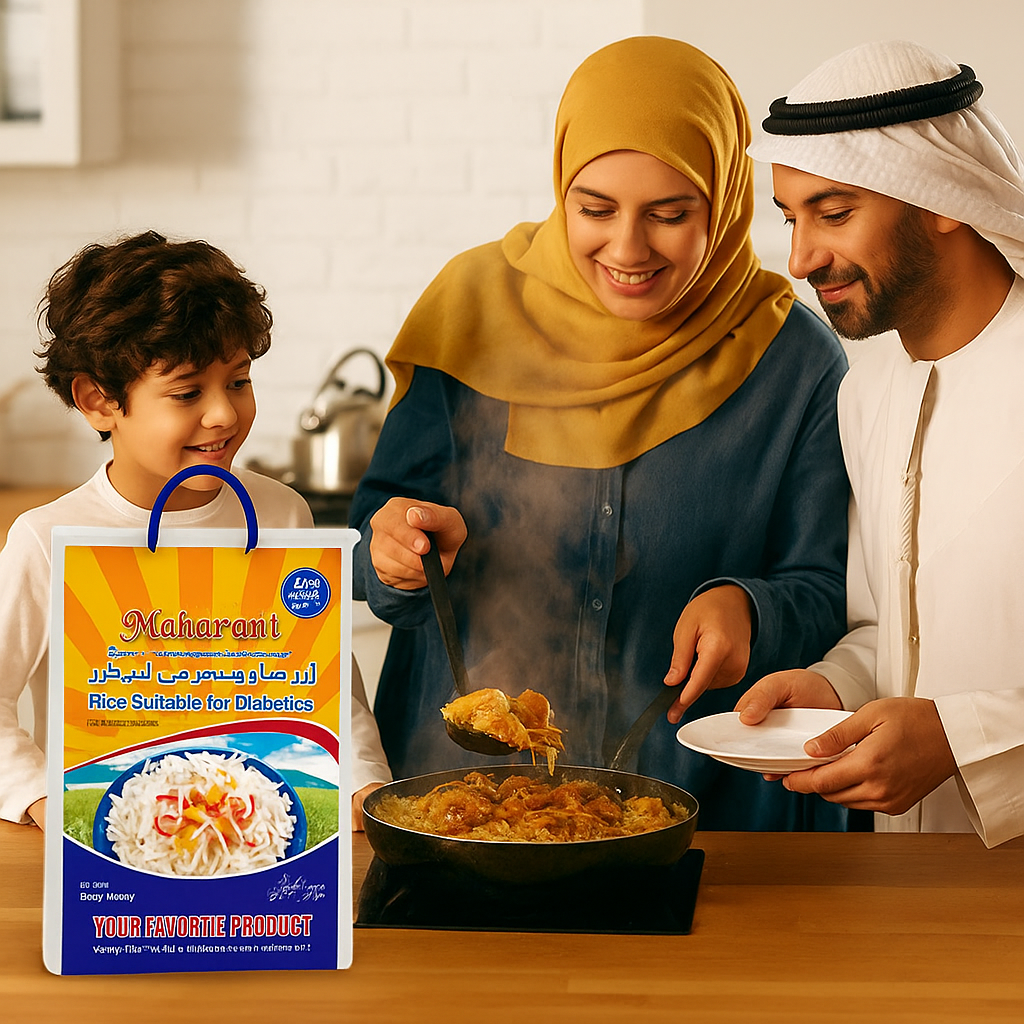 Low GI rice digests more slowly, which means glucose enters the bloodstream gradually. This helps reduce sudden sugar spikes, supports balanced insulin levels, and provides long-lasting energy. For people with diabetes, low GI foods like Maharani Rice are safer and more suitable as part of daily meals.